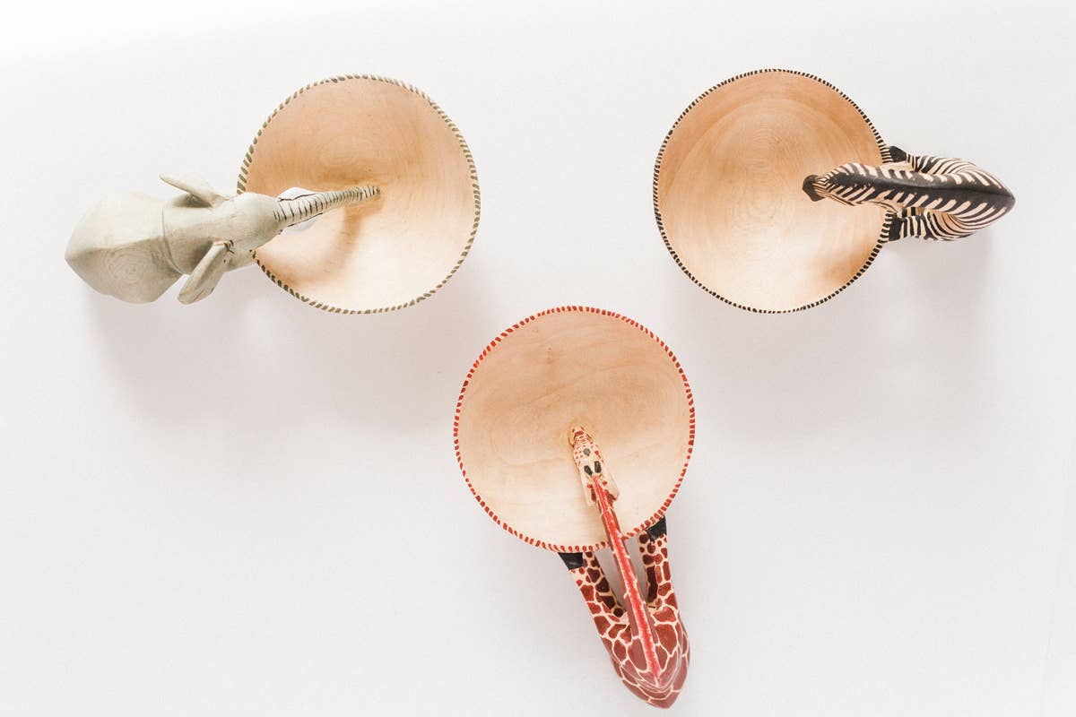 Hand-Carved Drinking Zebra Bowl