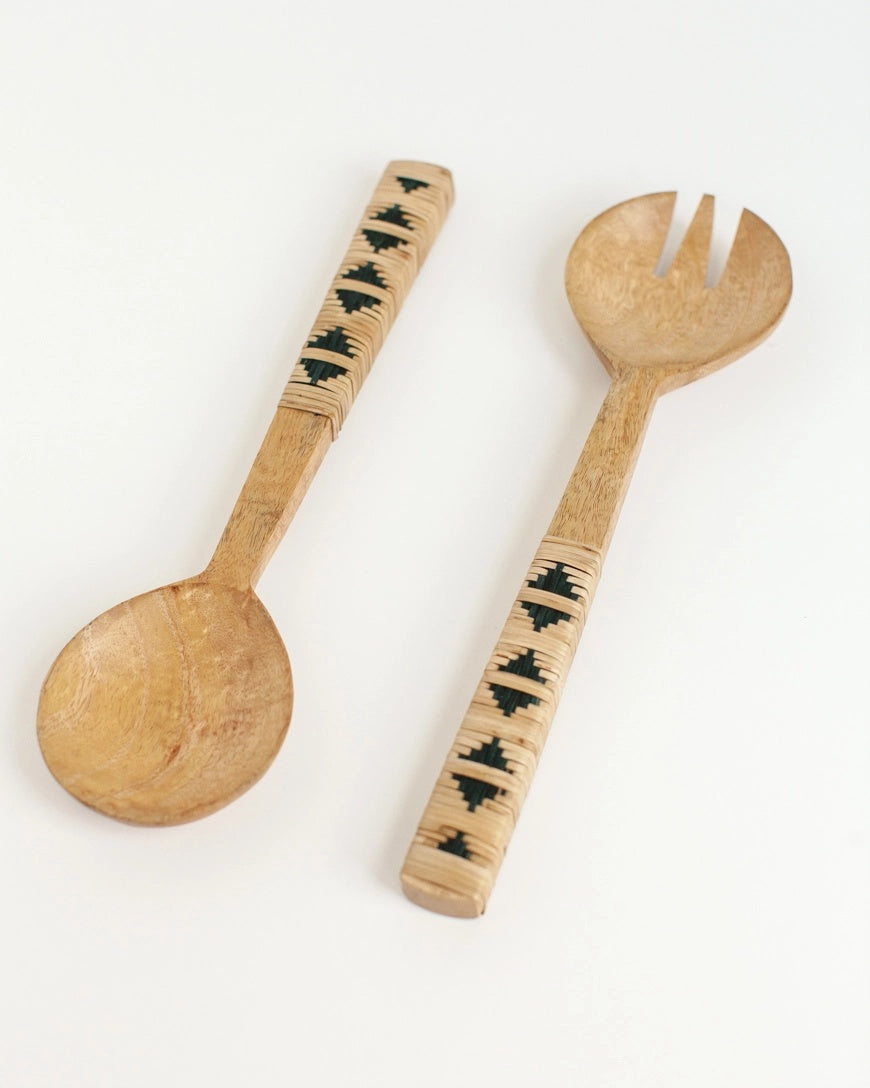Woven Mango Wood Salad Servers – Geometric Design